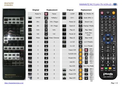 Télécommande de remplacement pour la télécommande Marantz RC711AV.